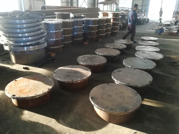 压力人孔也称快开式压力人孔,开启的方式有方便、 性高及外形美观实用等特点。主要是为了方便工作人员进出罐体工作跟检修的一个设备。为满足使用压力要求及密封性能,在人孔筒节及盖子链接处焊接上、下二片法兰,并且螺栓上、下片螺紧。